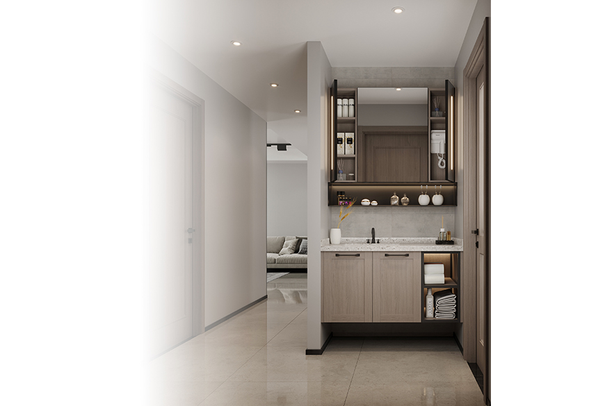 吊柜搭配鏡面門板,既是梳妝鏡又是收納柜